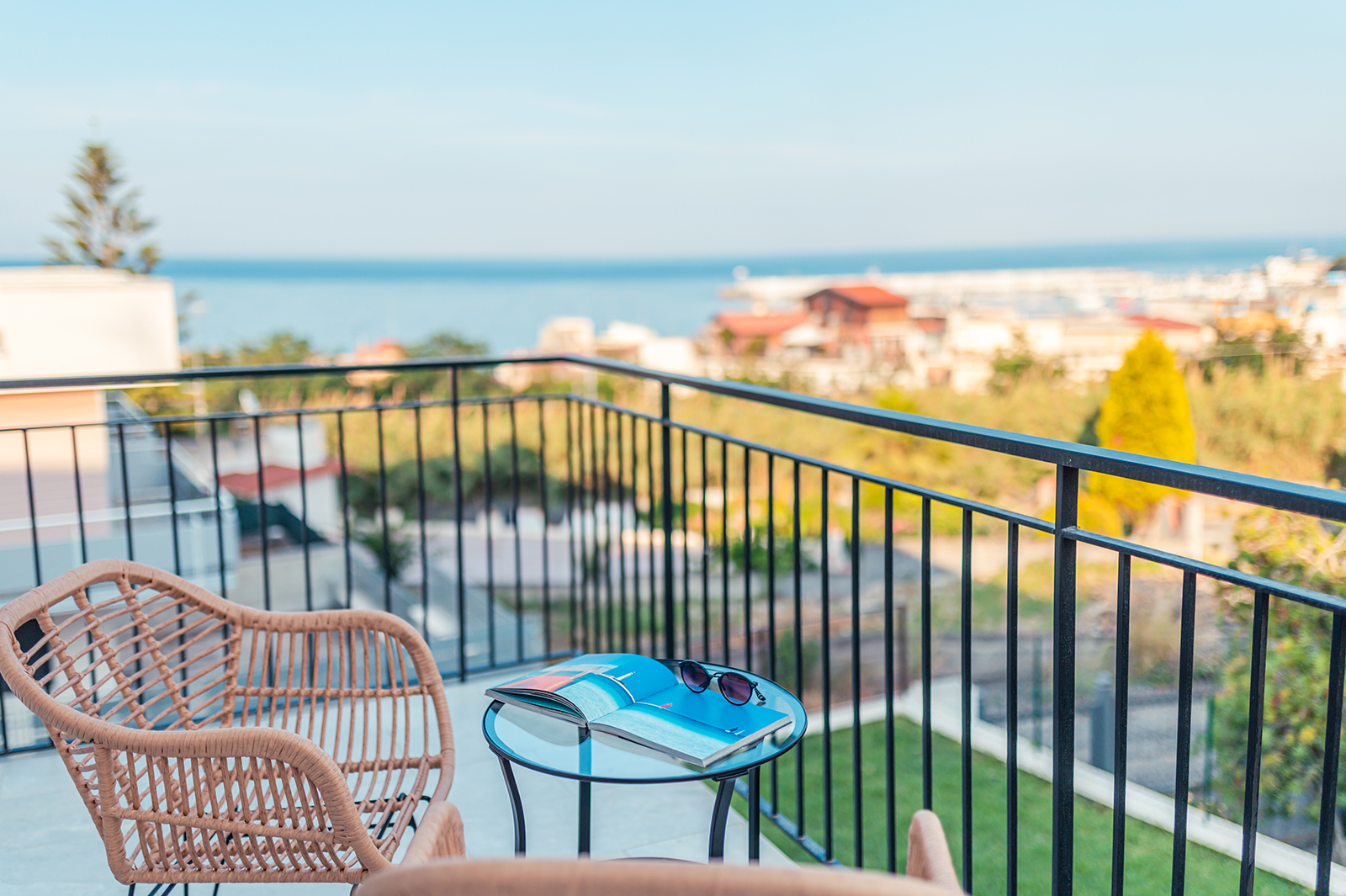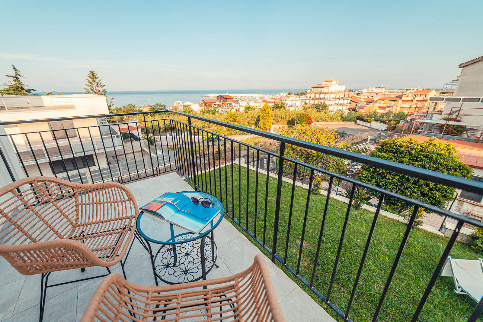 Dedicato ai nostri ospiti, un ampio balcone con vista mare che si affaccia sul giardino della struttura dove è possibile ammirare la splendida baia di Giardini Naxos con i sui incantevoli tramonti.